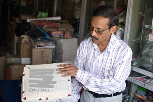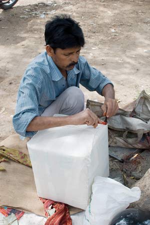 Taking time off from selling his paan, the man who helped us made our parcel suitable for posting overseas can be seen in the sequence of photographs that follow.